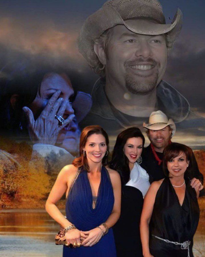 “Don’t Let the Old Man In” is more than a song; it is a testament to resilience, love, and reflection on life’s fleeting moments. As Toby Keith’s voice resonated through the venue, it carried the weight of personal experience, drawing the audience into an intimate understanding of struggle, triumph, and unwavering determination. The performance illuminated the unspoken strength of family bonds, particularly through the presence of his wife, Tricia, whose smile, though gentle, concealed a tremor, revealing courage in the quietest moments. Their daughters stood close, holding each other in subtle gestures of solidarity, encapsulating the emotional gravity of the evening.